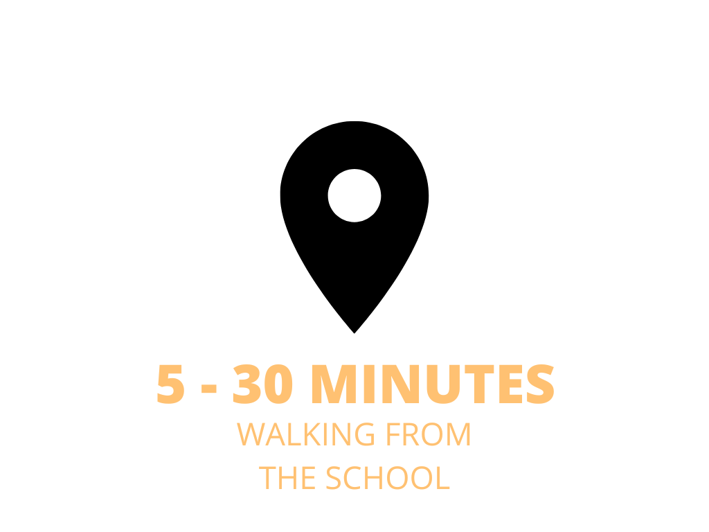 Apartments are usually from 10 to 30 minutes (by foot) away from the school building.