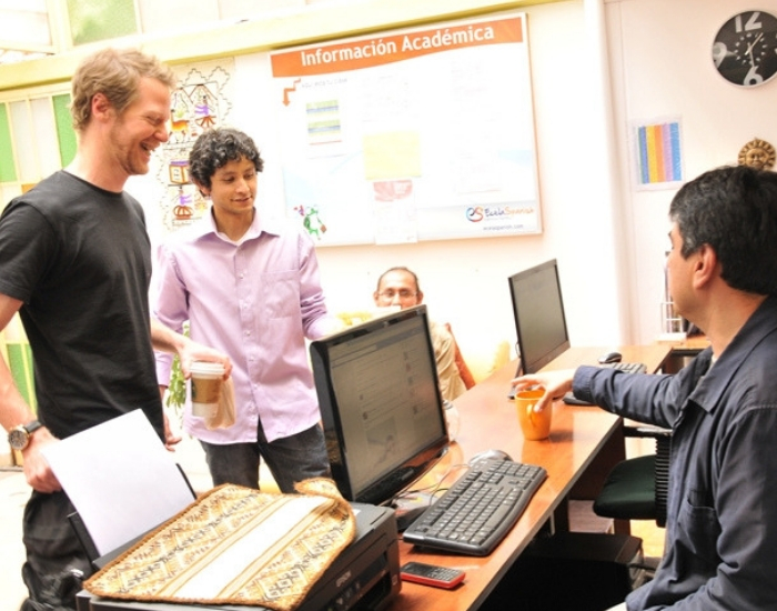 We zijn gelegen op slechts tien minuten met de bus van het historische centrum van de stad. Onze school in Cusco ligt in een niet-toeristische woonwijk, de Magisterio buurt, erg rustig en veilig, omringd door restaurants, cafés, banken en winkelcentra, wat onze studenten een authentieke ervaring geeft, en de mogelijkheid om Spaans te oefenen binnen en buiten de school vergemakkelijkt. Ons gebouw heeft negen (9) klaslokalen, een koffieruimte, een keuken, een patio met groene zones, een terras en Wi-Fi.